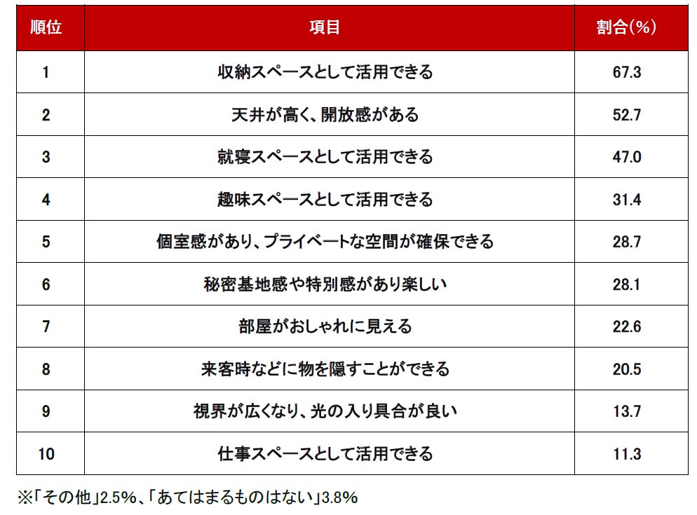 Q. ロフト付物件について、おすすめのポイントを教えてください。(複数回答/上位10項目)