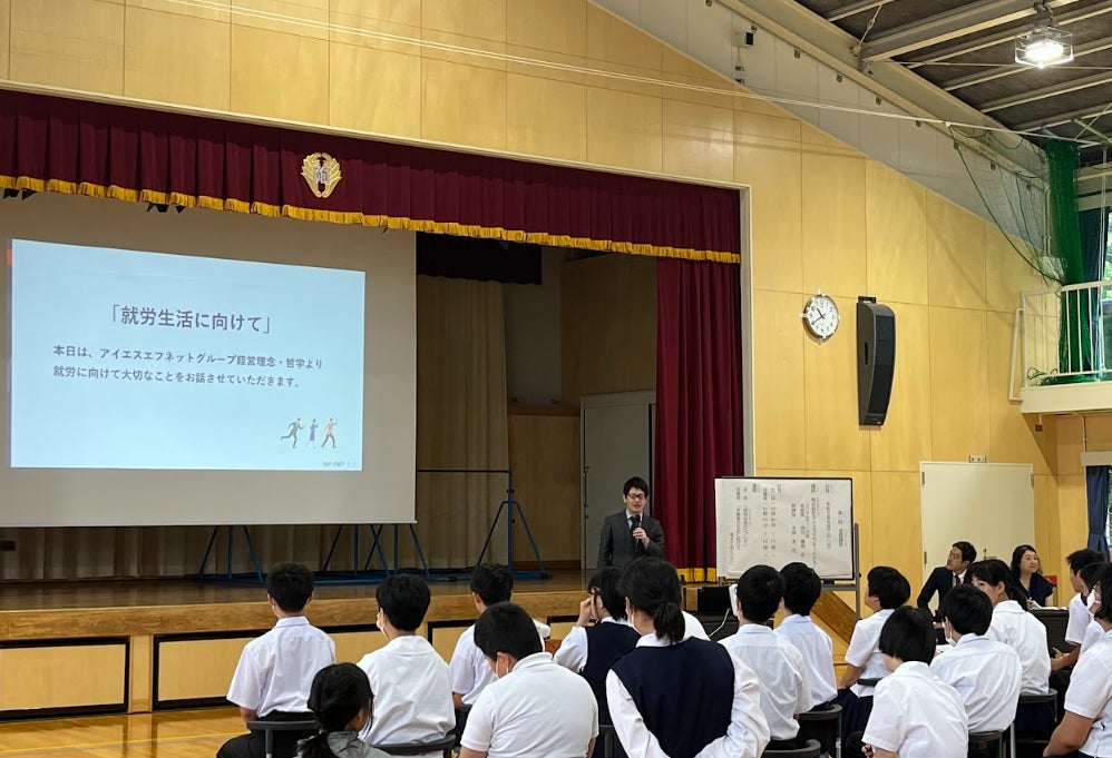 アイエスエフネットジョイは、2023年6月に同校の進路講話へ初めて登壇いたしました。