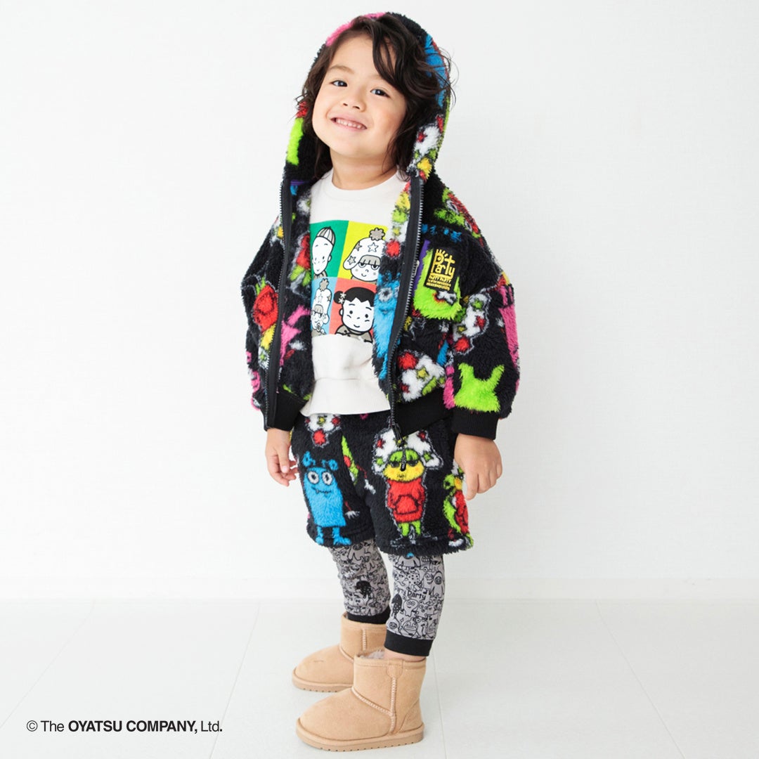フリースパーカーとセットアップ可能なボトム。フリース部分とスパッツがくっついており、重ね着風を楽しめます。ウエストはリブ素材で肌触りがよく、子供服ならではの気遣いと、PARTYPARTYらしいカラフルなロゴがポイントです。