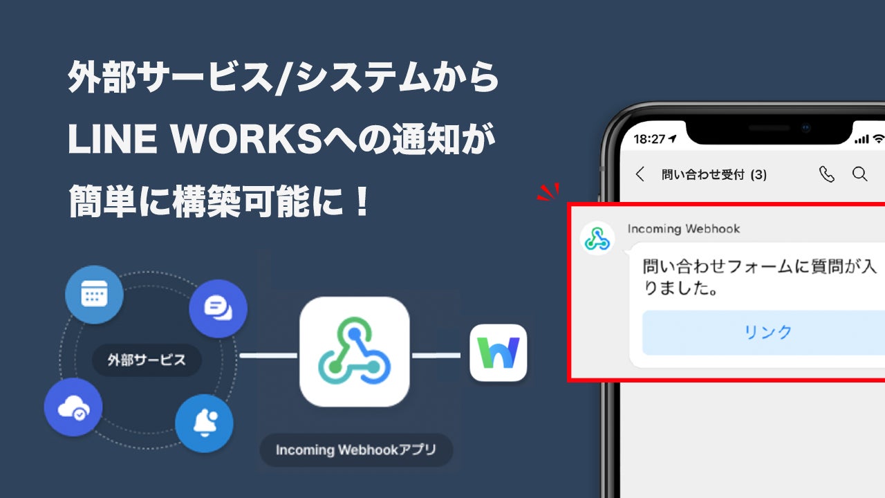 本アプリは、Webhookの中でもIncoming Webhook機能を提供しており、外部のサービスからLINE WORKSへの情報を自動的に受け取ることができます。