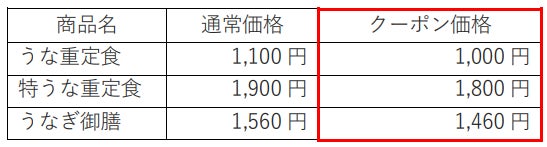 ※『[テイクアウト]うな重』、『[テイクアウト]特うな重』は、『なんどもパス』の割引対象外です