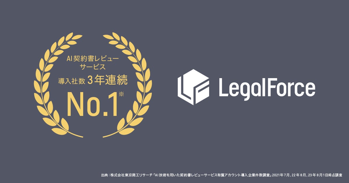 AI契約審査プラットフォーム「LegalForce」、東京商工リサーチの「AI技術を用いた契約書レビューサービス有償アカウント導入企業件数調査」で3年連続No.1を獲得!