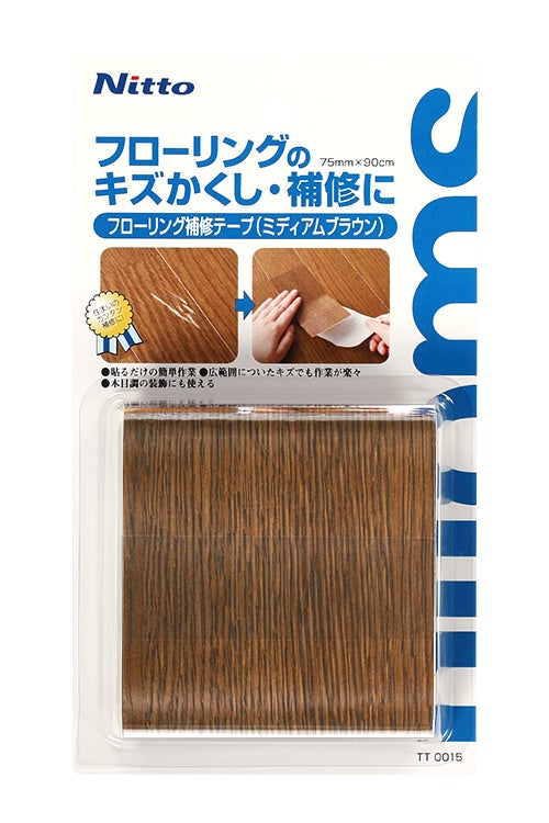 『フローリング補修テープ』は、木目調のプリントが施されたテープで、日常生活で発生しやすいフローリングの擦りキズやへこみキズを簡単に隠して補修できる製品です。2000年の発売以来、手軽に使えるおうちのメンテナンス製品として多くの支持を得てきました。近年、住まいのニーズやライフスタイルの多様化により、部屋を明るく見せるホワイト系やナチュラルな雰囲気を演出するホワイトオーク系の床材の人気が高まっています。これに応え、「ホワイト」と「ホワイトオーク」の2色を新たに追加しました。「ミディアムブラウン」「ライトブラウン」「ダークブラウン」は、リニューアル(色味の見直し)し、全5色で展開します。