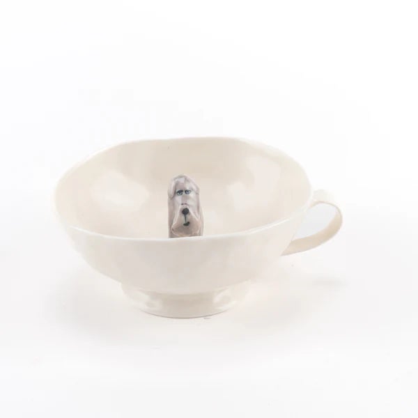 コーヒーカップよりも一回り大きく、エレガントな高台がついているティーカップ。ゴツゴツした手作りの質感を強調することで、犬の体温まで感じられるような温かみのある雰囲気が大人気。犬のパーツはもちろん、カップも、全てひとつひとつエレオノール自身の手作りです。