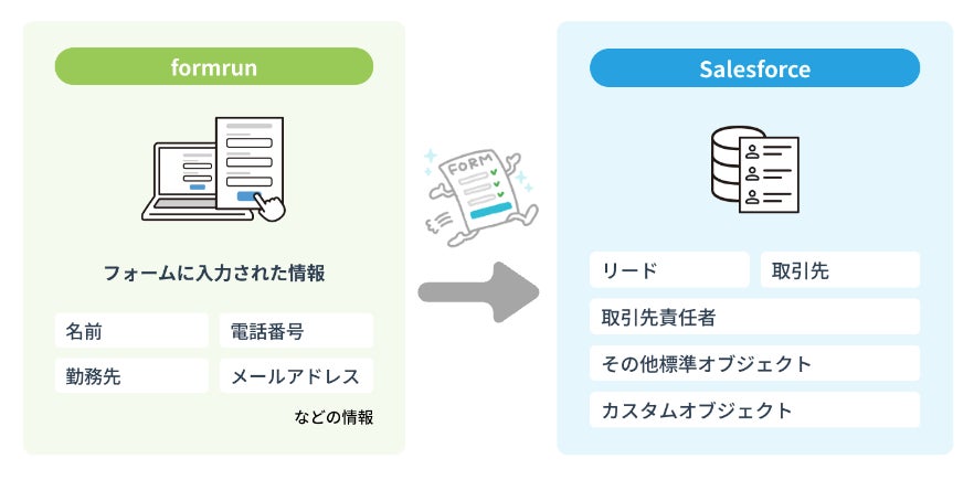 この度提供を開始する『formrun』と『Salesforce』との連携機能は、『formrun』に入力された情報を『Salesforce』上の顧客データとして自動送信することで、リード情報蓄積の手間やコストを大幅に削減できる機能です。