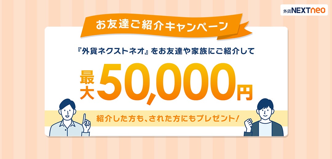 株式会社外為どっとコム(本社:東京都港区、代表取締役社長:竹内 淳)は、店頭FX『外貨ネクストネオ』にて、「お友達ご紹介キャンペーン」を2023年より実施します。
