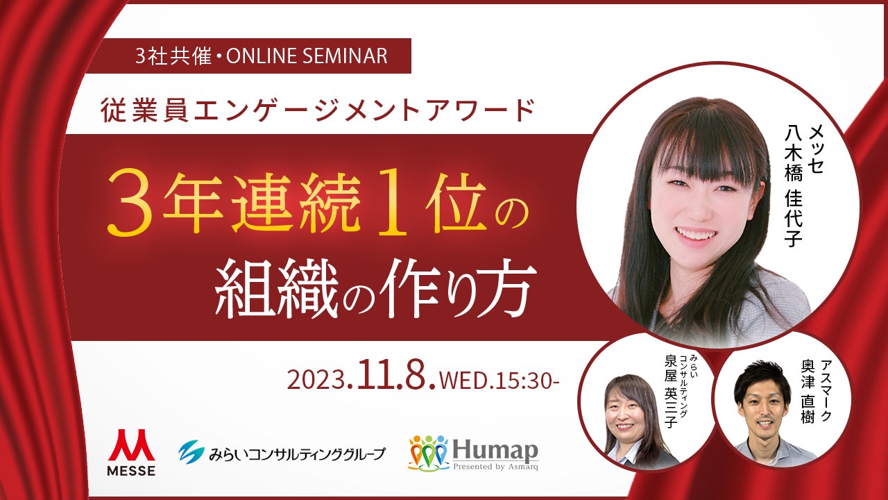 そこで今回、従業員エンゲージメントアワードで3年連続1位を獲得した株式会社メッセ様に登壇いただき、