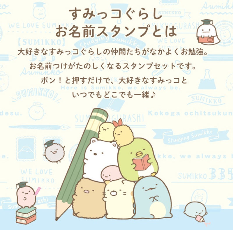 かわいいすみっコでお名前つけ!すみっコのイラストスタンプがついたお名前スタンプセット「すみっコぐらし お名前スタンプ」に6匹のすみっコがあらたに追加。