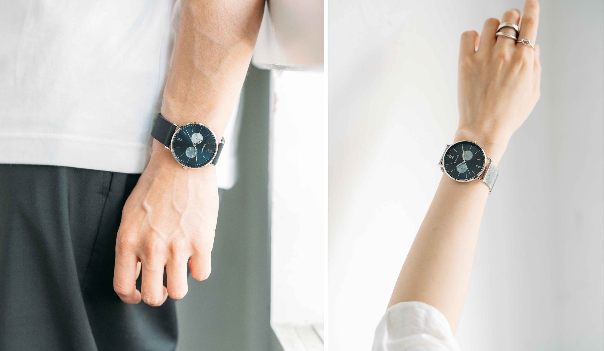 ストラップが2本付属するChangesシリーズをベースに、オーロラのような輝きを持つマザーオブパールを採用しました。