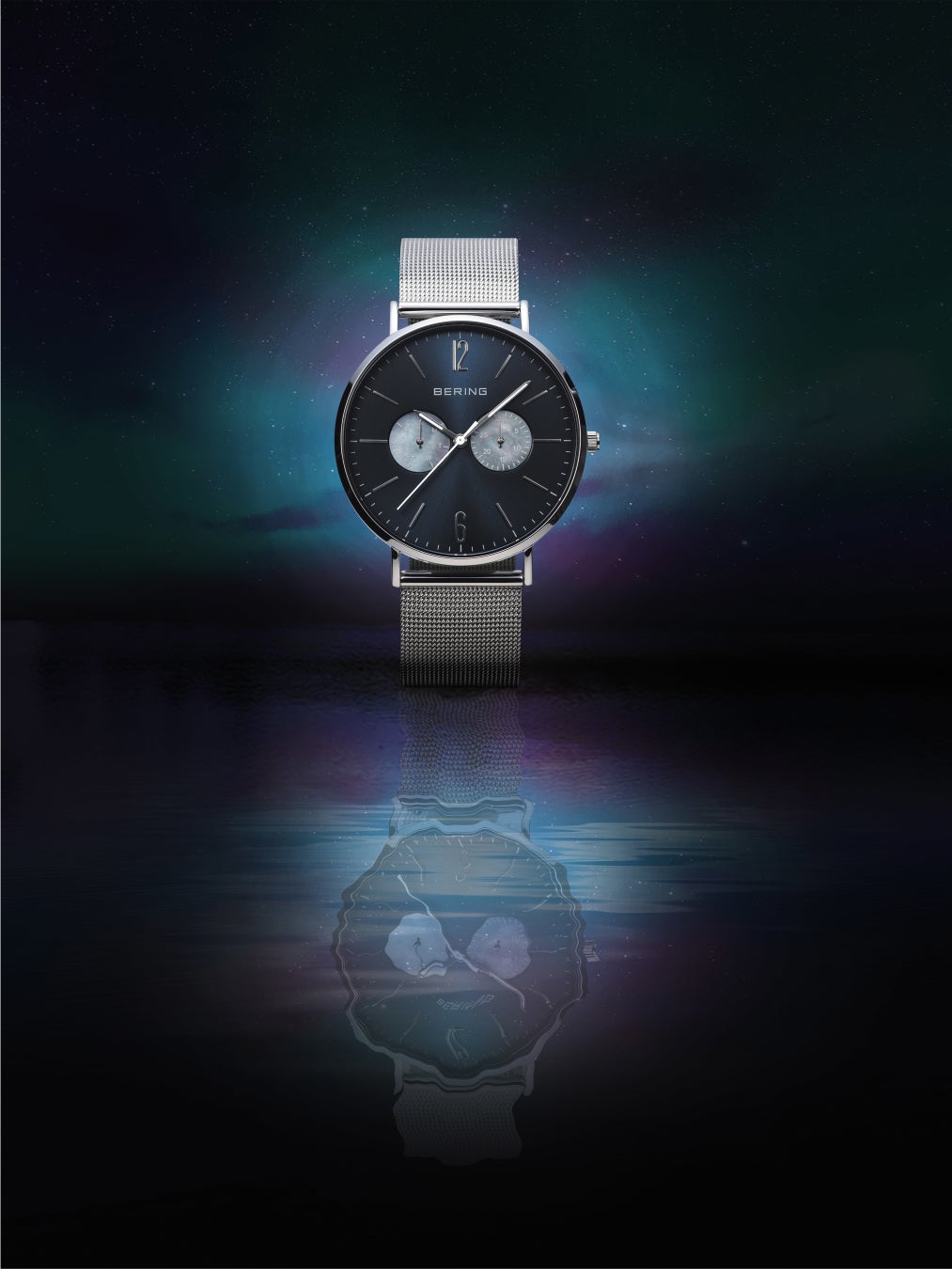 2013年からBERINGが日本限定で販売している、ブランドを代表するイヤーズコレクションです。BERINGのインスピレーション源である”北極”の大地を照らす神秘的なカーテン”オーロラ”をイメージして数量限定で制作しています。