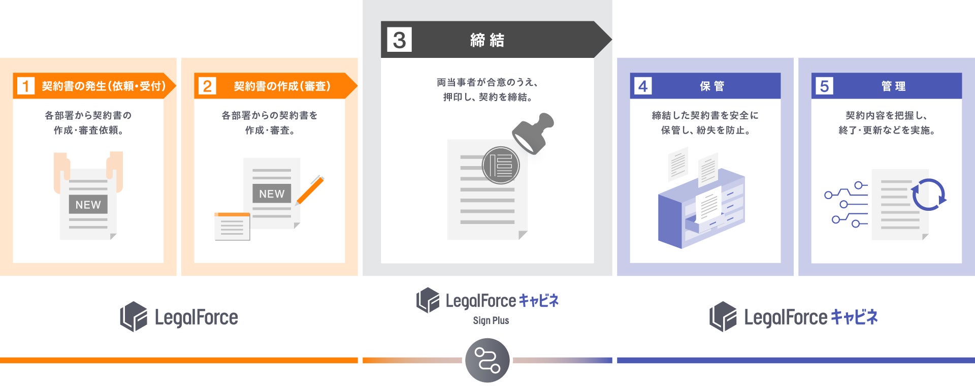 この度、LegalForceキャビネのオプションとして、電子契約サービス「LegalForceキャビネ サインプラス」を提供開始※することにより、契約ライフサイクル全体の管理、効率化をワンストップで支援できる基盤が整いました。