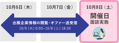※出展企業情報の閲覧・カジュアル面談オファーの送受信:10/6(木)~10/8(土)