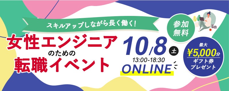 女性エンジニアのための転職イベント ONLINE』を開催いたします(https://woman-type.jp/s/event/online-engineer/?waad=EyUjNx9h)。