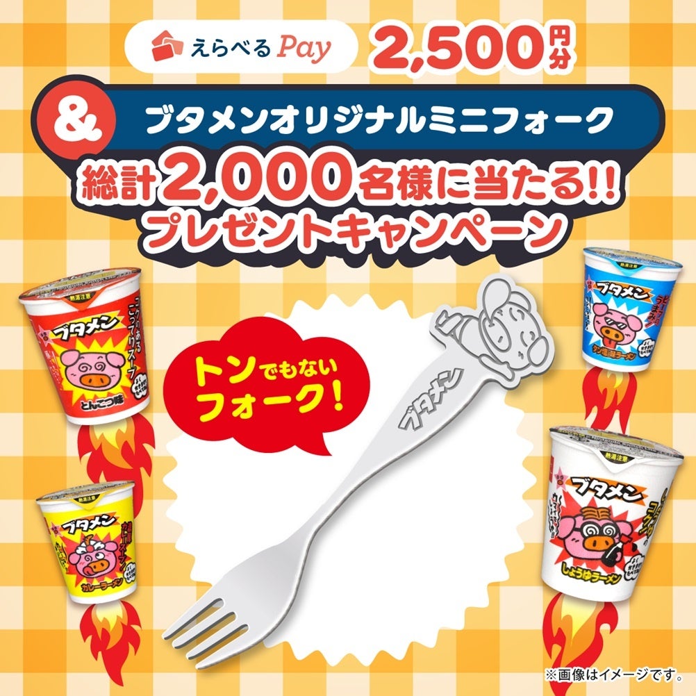 第2弾はブタメンオリジナルミニフォーク付き!えらべるPay2,500円分プレゼントキャンペーン