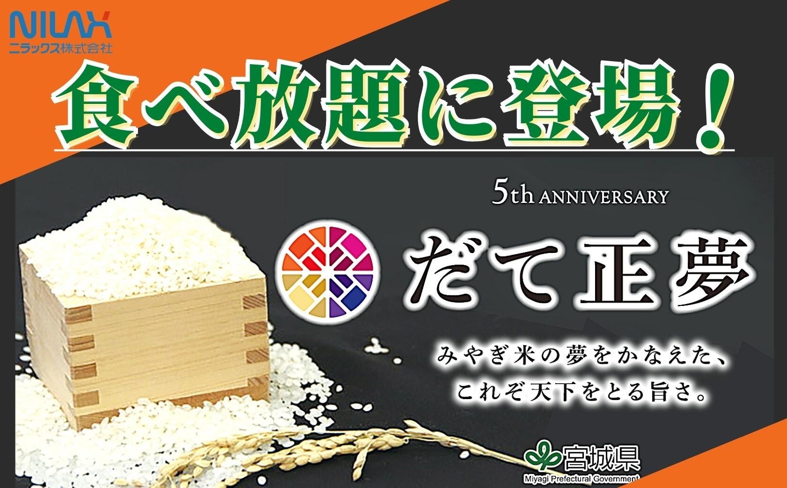 【“だて正夢”が食べ放題!】ニラックスブッフェ10店舗にて、次世代のプレミアムブランド米の『だて正夢』が登場!もちもち食感と噛むほどに溢れる甘みと旨みを思う存分ご堪能ください!