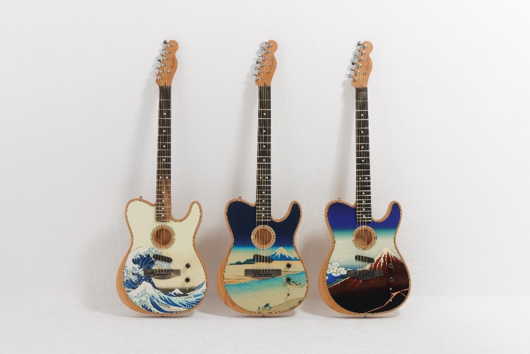 American Acoustasonic®は、Fishman®と共同開発した強力なサウンドプロセッサーを内蔵し、幅広いアコースティックギターとエレクトリックギターのトーンを一本で楽しめる、全く新しいユニークなモデルです。2019年の登場以降、数多くの有名アーティストが愛用している人気モデルになります。旗艦店のオープンを記念し、世界的な知名度を誇る浮世絵師 葛飾北斎の代表作『富嶽三十六景』の作品をボディにプリントした特別モデル3機種が販売されます。