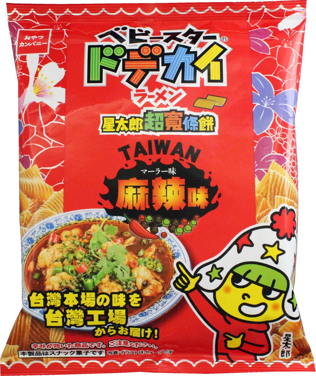 株式会社おやつカンパニー(本社所在地:三重県津市 代表取締役社長:横山正志)は、台湾・桃園市のおやつカンパニー台湾工場で製造した台湾現地で人気の味『ベビースタードデカイラーメン(TAIWAN麻辣味)』を逆輸入し、2023年11月20日(月)より全国にて発売します。花椒が香るエキゾチックな台湾本場の味わいをお楽しみください。