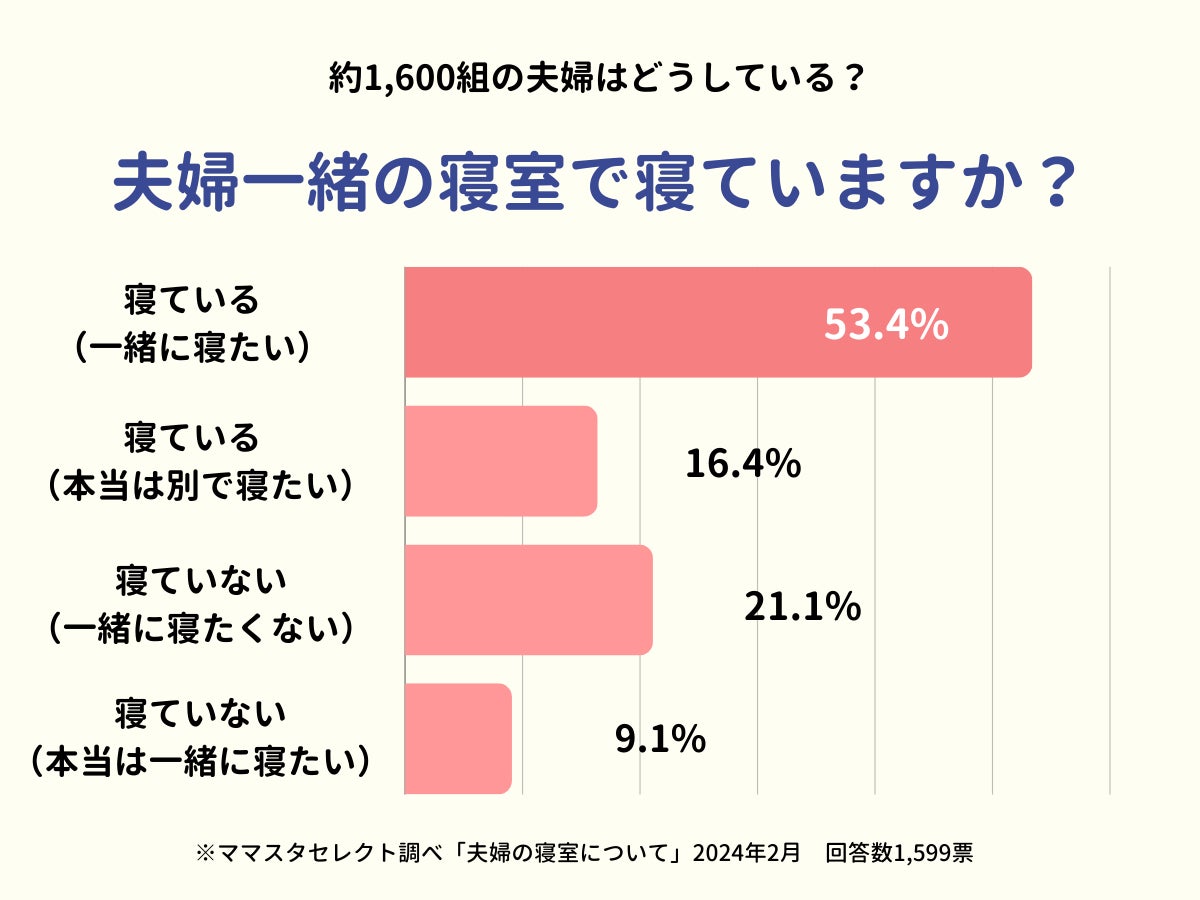約1,600人のママたちが回答。「夫婦の寝室で一緒に寝たいか」ホンネは?