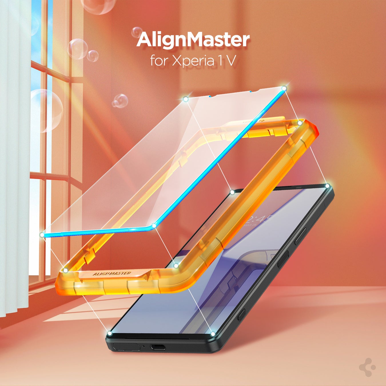 「Xperia 1 Ⅴ」専用のガラスフィルム【Align Master】は、誰でも簡単に貼り付けできる特徴を持つSpigenを代表するガラスフィルムです。