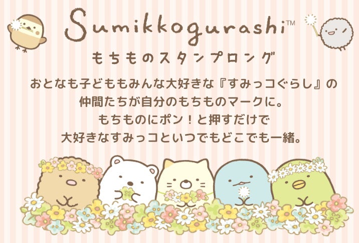 布プラOK!?かわいいすみっコが自分のもちものを教えてくれるお名前つけはんこ「すみっコぐらし もちものスタンプロング」の予約受付スタート。
