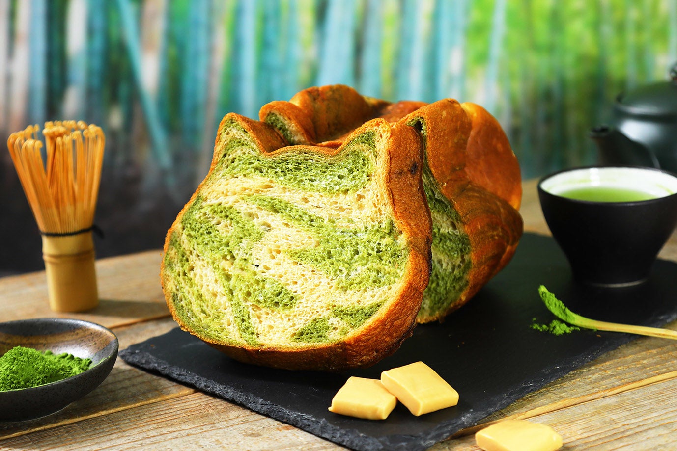 そんなユーモア溢れる「ねこねこ食パン まっ茶トラ」は、ねこねこ食パン特徴のミルク100%使用したミルキーな味わいに、豊かな抹茶の風味とほんのり香ばしく甘みのあるキャラメルの味わいをのせた一品。和と洋が織り成す贅沢な味わいをどうぞお楽しみください。