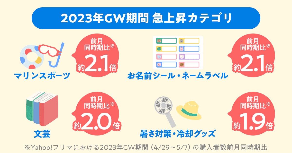 ■「Yahoo!フリマ」における2023年GW期間(4/29〜5/7)の急上昇カテゴリ
