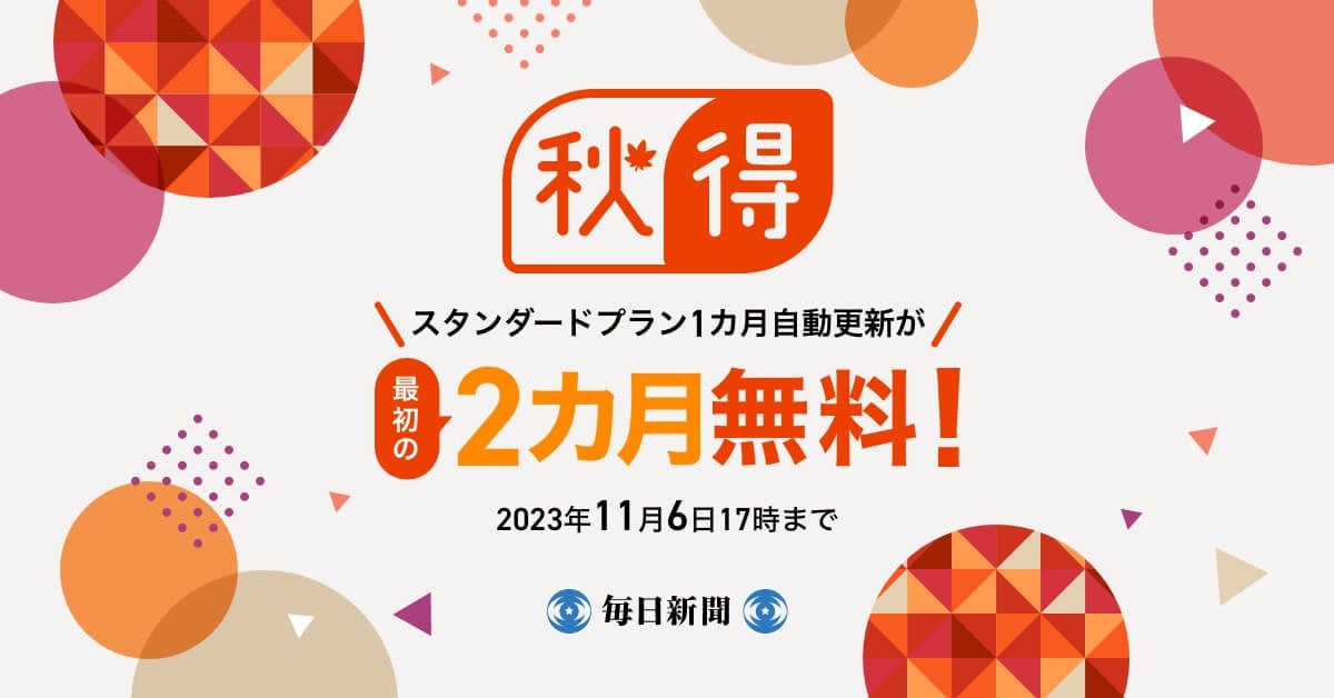 スタンダードプランが最初の2カ月間無料! 毎日新聞デジタルの「秋得」キャンペーン開始