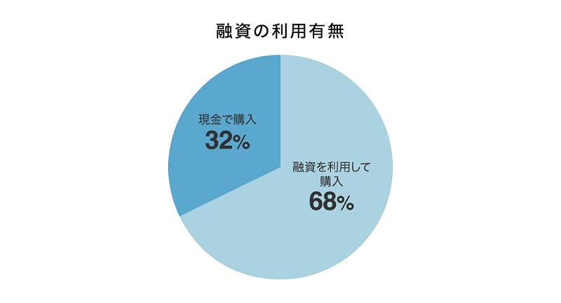 「融資を利用して購入」が68%、「現金で購入」が32%という結果になりました。