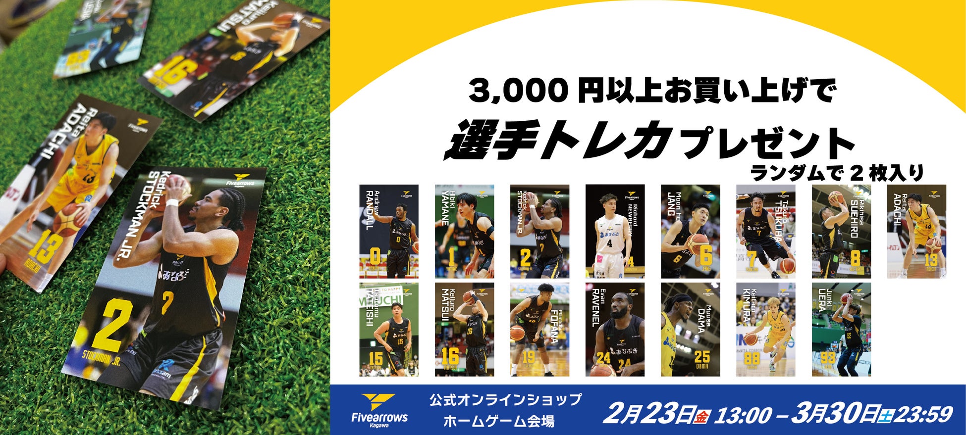 オンラインショップで開催している「3,000円お買い上げごとに選手トレカプレゼントキャンペーン」をホームゲーム会場にも拡大!