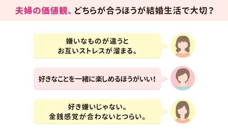 【夫婦の価値観アンケート】結婚生活において重要なのは「好きなものが合う」「嫌いなものが合う」どっち? 500人のママの答えは…