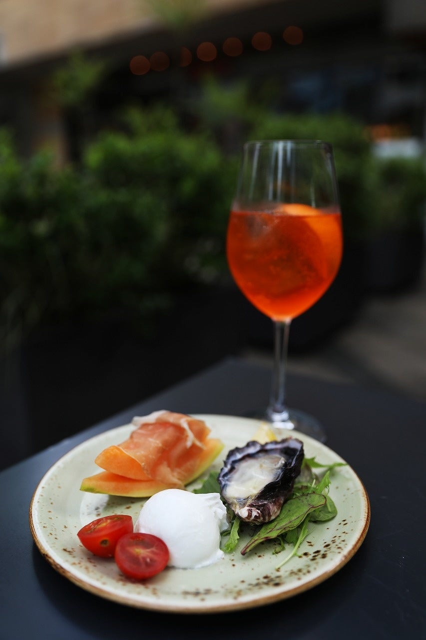 ガーデンアンティパスト(水牛モッツァレラチーズ、 イタリアメロン&生ハム、大分産生牡蠣)+ ワンドリンク