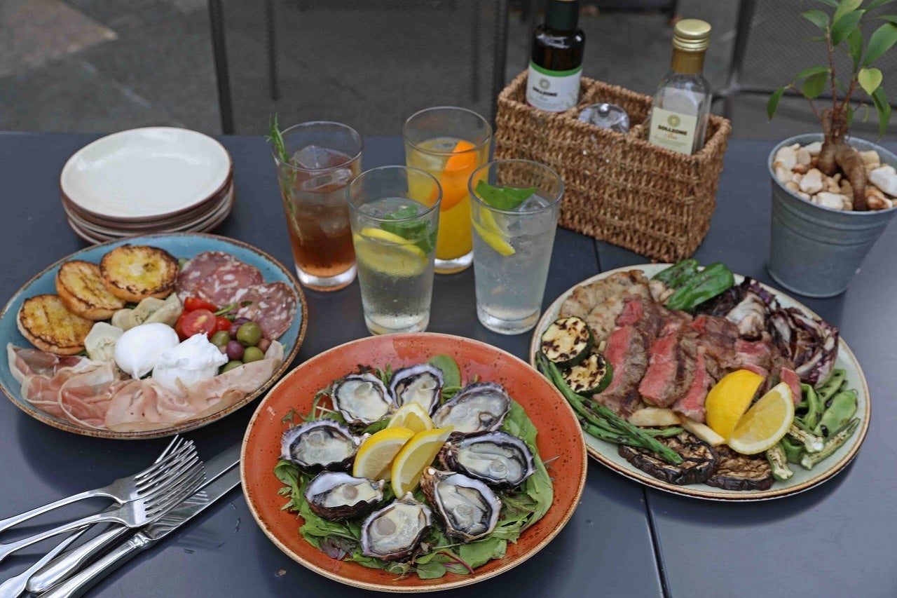 青空の下で軽く1杯を楽しみたい方には、ガーデンアンティパスト(水牛モッツァレラ、イタリアメロン&生ハム、 大分産生牡蠣)とワンドリンクがセットになった「ガーデンアペリティーボ」がおすすめです。たっぷりとお食事を楽しみたい方には、人気メニューを盛り合わせにした「ガーデンプラッター」や「グリルドプラッター」がおすすめです。