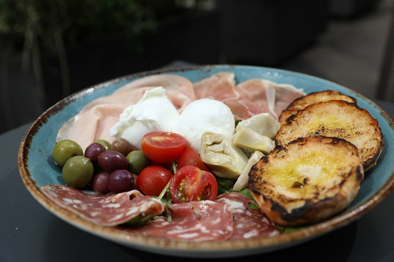モッツァレラ2種、 サルーミ3種、 アーティチョークピクルス、 フレッシュオリーブ