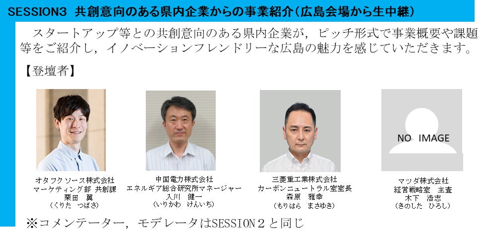 しません。SESSION2・3の登壇者への取材や「Hiroshima Green Innovation Party」の取材について