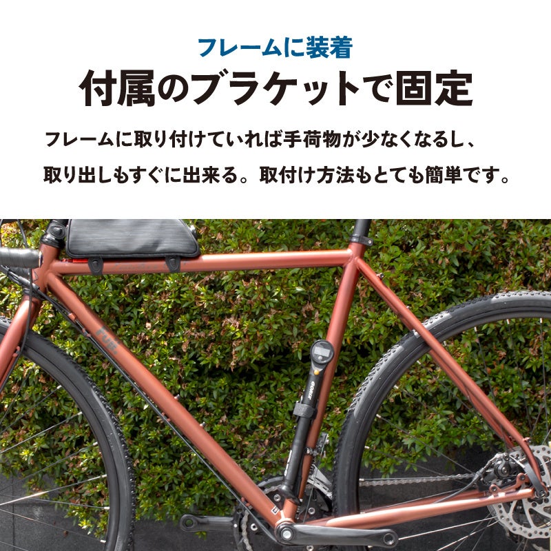 フレームに取り付けていれば手荷物が少なくなるし、取り出しもすぐに出来ます。