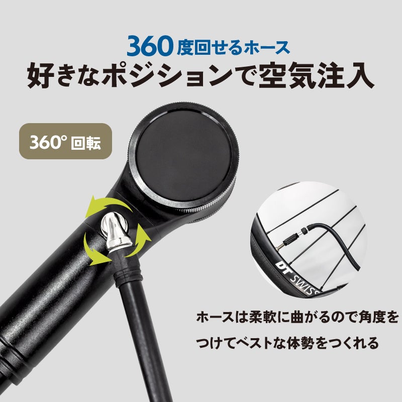 360°回せて空気を入れる角度を選べるホース型です。