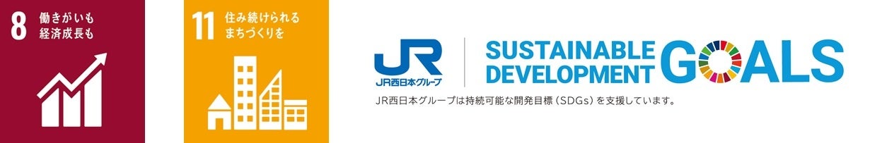 JR西日本ホテルズは、持続可能な開発目標(SDGs)を持ち、地域と共に、お客様一人ひとりの豊かな人生を広げます。今回ご案内の取り組みは、SDGs 目標の8番、11番に貢献するものと考えています。