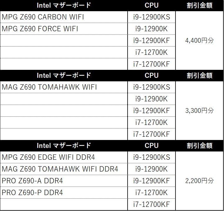 GW Intel CPUバンドルキャンペーン2022:※各店舗までご確認をお願い致します。
