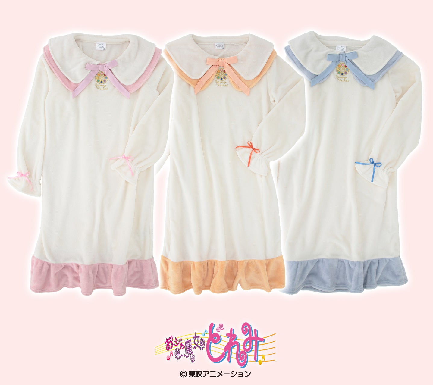 ラインナップは、『魔女見習いスモック風ワンピース』、『フード付Tタイプ』、『フレアシャツパジャマ』、『刺繍T×ロングパンツ』『バック刺繍入りチェックカーディガン』の全5種です。