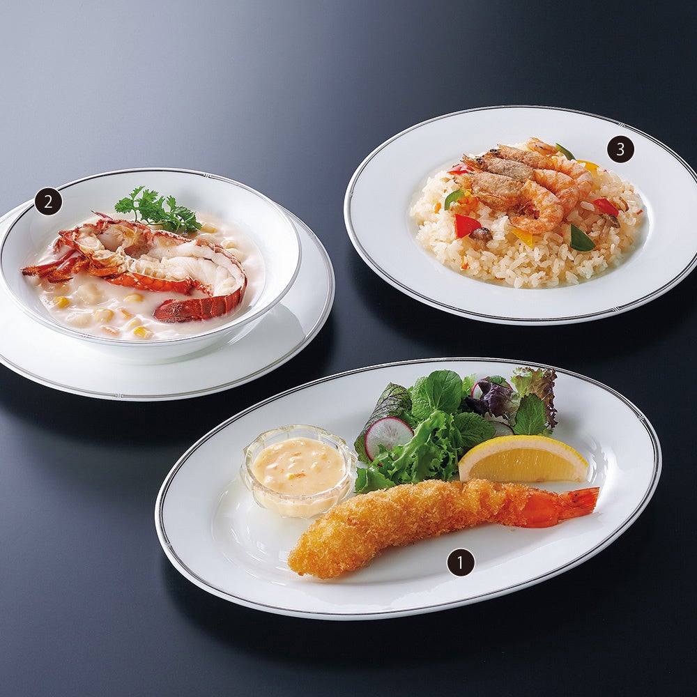 - 3種類の国産海老を使用した、バラエティ豊かな料理に舌鼓
