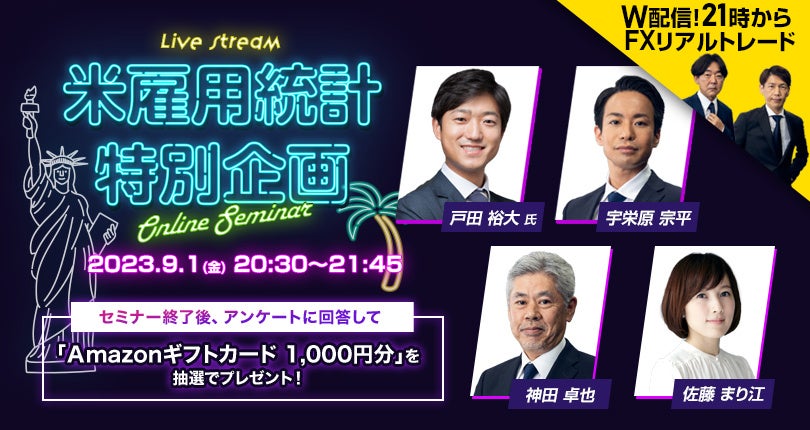 【外為どっとコム】『LIVE配信 オンラインセミナー 米雇用統計』ドル/円はどうなる?米雇用統計ライブセミナー ~9月1日(金)20:30より開催~