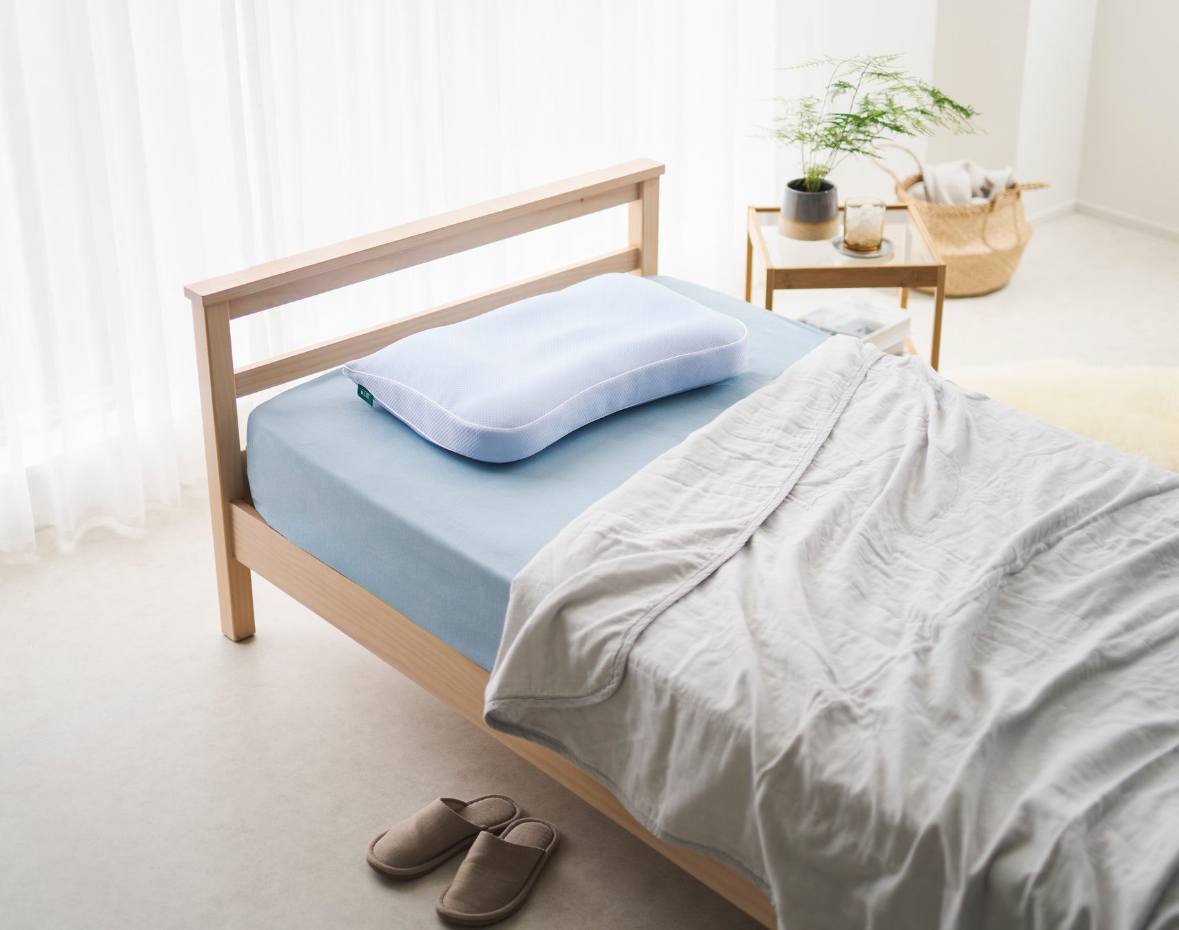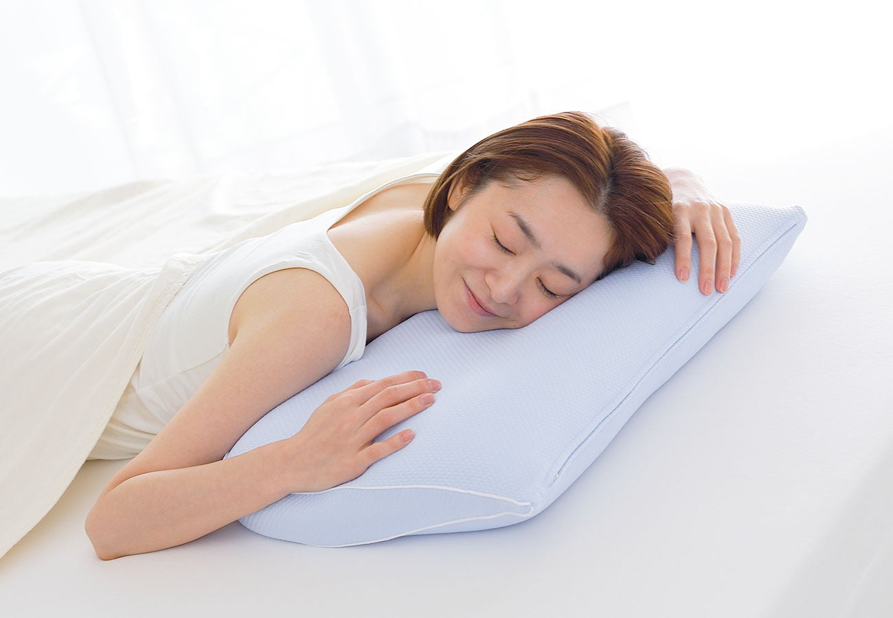 クールタイプには、ひんやりとした感触と、さらりとした肌触りを併せもつ接触冷感素材を使用。通常タイプの優しい肌触りを引き継ぎつつ、夏の寝苦しい夜の眠りをサポートする新しい枕です。