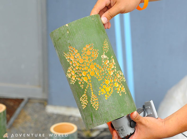 パークスタッフ、ゲスト、地域の皆様、大阪府岸和田市の皆様(パンダの食事用の竹は岸和田市の竹林から調達しています)、その他多くの皆様が製作に加わり創り上げます。各所で竹あかりワークショップを開催いたします。