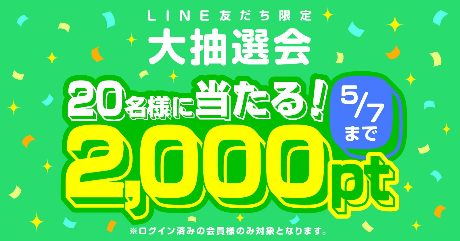 LINE友だち限定で抽選で20名様に2,000ポイントが当たる大抽選会を開催!