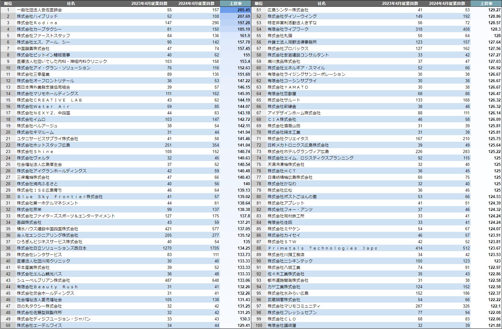 【広島市】成長企業ランキングTOP100!/SalesNow DBレポート
