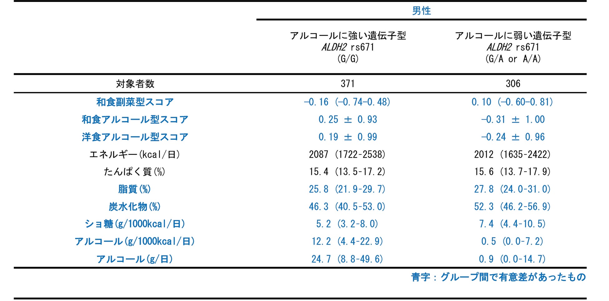 タイトル(日本語訳):ALDH2遺伝子多型およびアルコール摂取と食事パターンの関連:文京ヘルススタディー