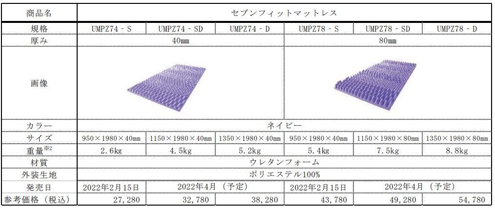 7つのゾーニングで体圧分散質の良い睡眠をサポート「セブンフィットマットレス」発売