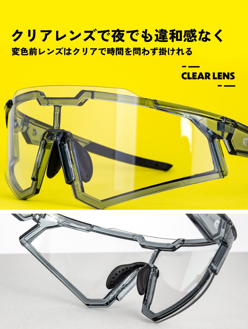 変色前はクリア(透明)で夜も違和感なく時間帯問わず掛けられます。