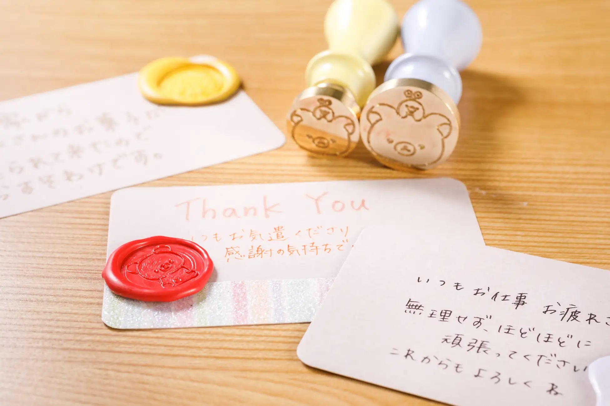 「ハンドメイド雑貨づくりに使えるハンコは作れませんか?」というお客様からの声にこたえて企画した、「リラックマ シーリングスタンプセット」。