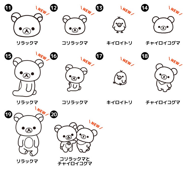 リラックマはもちろん、リラックマの仲間のキイロイトリ、コリラックマ、チャイロイコグマ、アオイコオオカミにサクラノコリスといったこれまでの10種類のイラストに加えて、お客様からもリクエストをいただいていたリラックマ・コリラックマ・キイロイトリ・チャイロイコグマのキュートな顔が刻印できる顔だけのイラストや全身入りのイラストなど10種類を追加。見ているだけでほんわか癒されそうな、とってもかわいい20種類から選べるようになりました。